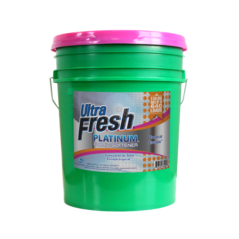 Ultra Fresh® Platinum™ Tropical Escape™ 3X Fabric Softener softens, conditions, and freshens, and the freshness lasts longer with the great scent of a tropical island escape. It is safe for all washable fabrics. Contains 5 concentrated gallons to do up to 640 loads. May be used in standard or HE machines. Safe for septic systems when used as directed.